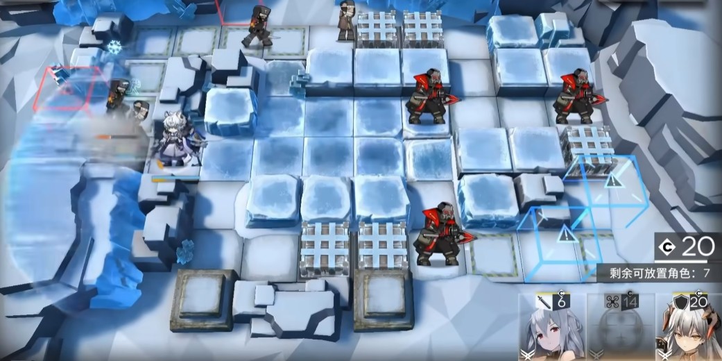 二技能“御敌的锋锐”侧重于范围控制与输出压制。发动时对前方多个敌人造成相当于其攻击力一定比例的伤害,并使其陷入寒冷状态,同时破除隐匿效果。此外,距离“风雪之眼”最近的待部署干员部署费用也会下调。当左侧最近位置有干员部署时,会以该干员的攻击力触发一次本技能的范围性附加效果,实现联动打击。