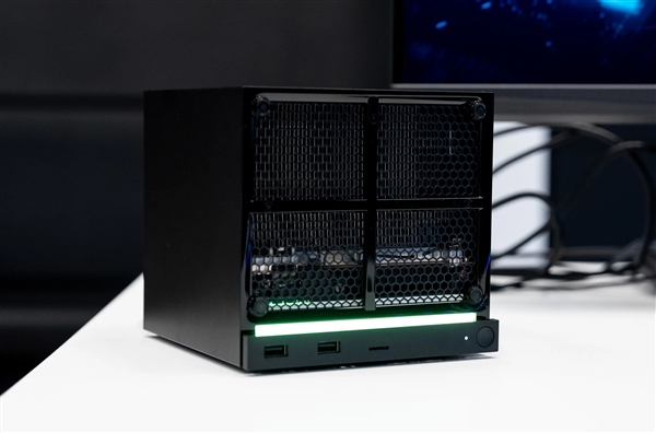主板支持2280 M2,同时兼容Steam Deck所用的2230;主板下方是群光定制电源,四周通风口留有冗余,以对冲灰尘堵塞;主机面板采用磁吸式设计,玩家可更换各种样式,比如TF2主题或电子墨水显示面板(可显示CPU/GPU温度与风扇转速)。