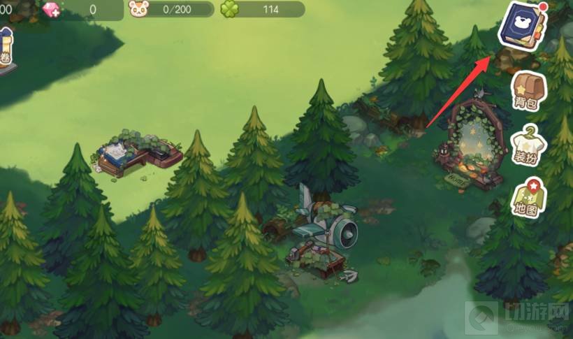 1、打开游戏界面后,点击右上角的小熊手册图标进入功能菜单。