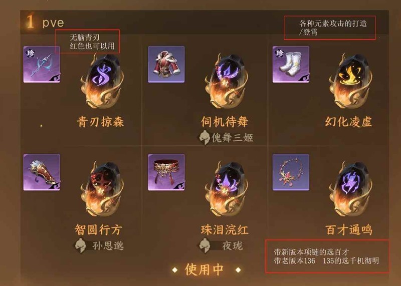 项链:新版本选择百才系列,旧版136/135品级建议千机彻明