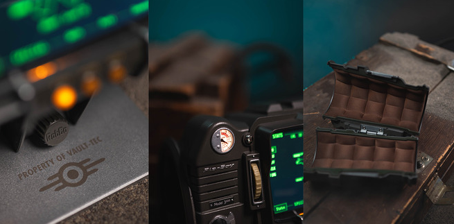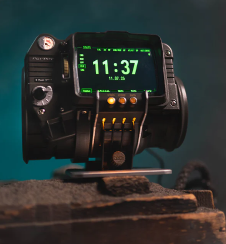 这款周边精准还原了游戏中Pip-Boy的所有细节特征,从标志性的弧形屏幕到机械旋钮,甚至重现了特有的绿色荧光显示效果。不同于普通周边产品,它内置了《Atomic Command》迷你游戏和实用时钟功能,让收藏价值与功能性得到完美平衡。