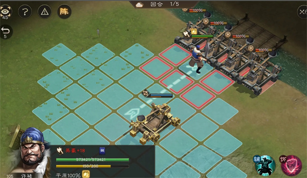 特别注意:即使友军投石车陷入缠斗,许褚必须专注既定目标持续输出。当敌方回合开始时,友军投石车的范围攻击会重创三台敌方单位,而它们的反击将触发我方投石车的自动还击机制。