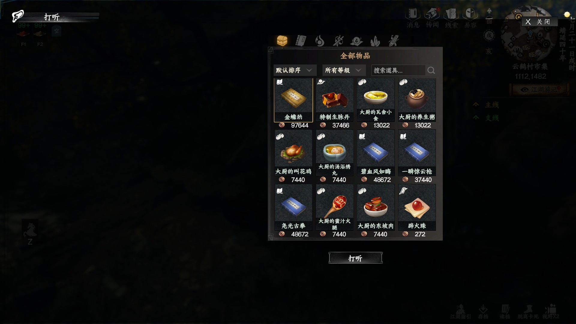 来到:189.644对话询问情况,出现江湖故事太极之道,跟随指引完成任务获得,京谕珠在飞鸽绝影楼总管获得位置