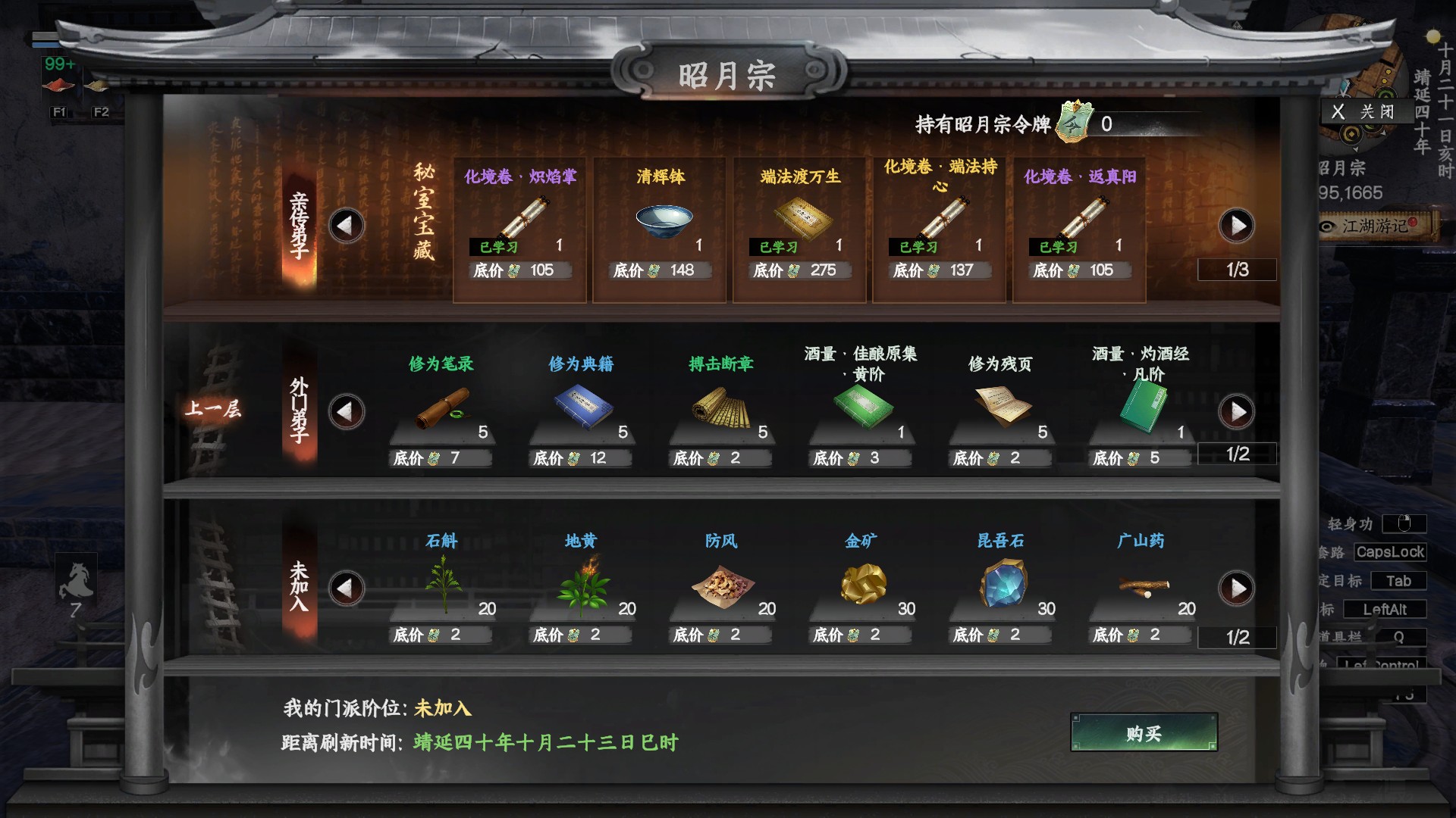 获取方式:昭月宗1695.1665关门弟子兑换,右边事务总管可以加入门派