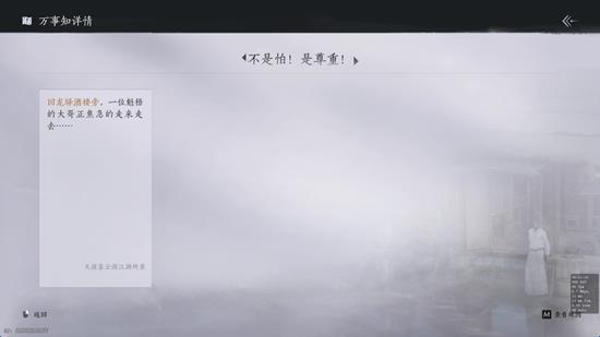 以上就是小编为大家带来的"不是怕!是尊重!"万事知任务全部内容。这个充满生活气息的小任务展现了燕云十六声丰富的人文关怀,让玩家在紧张刺激的江湖冒险之余,也能感受到市井生活的温暖与幽默。更多精彩游戏资讯请持续关注本站。
