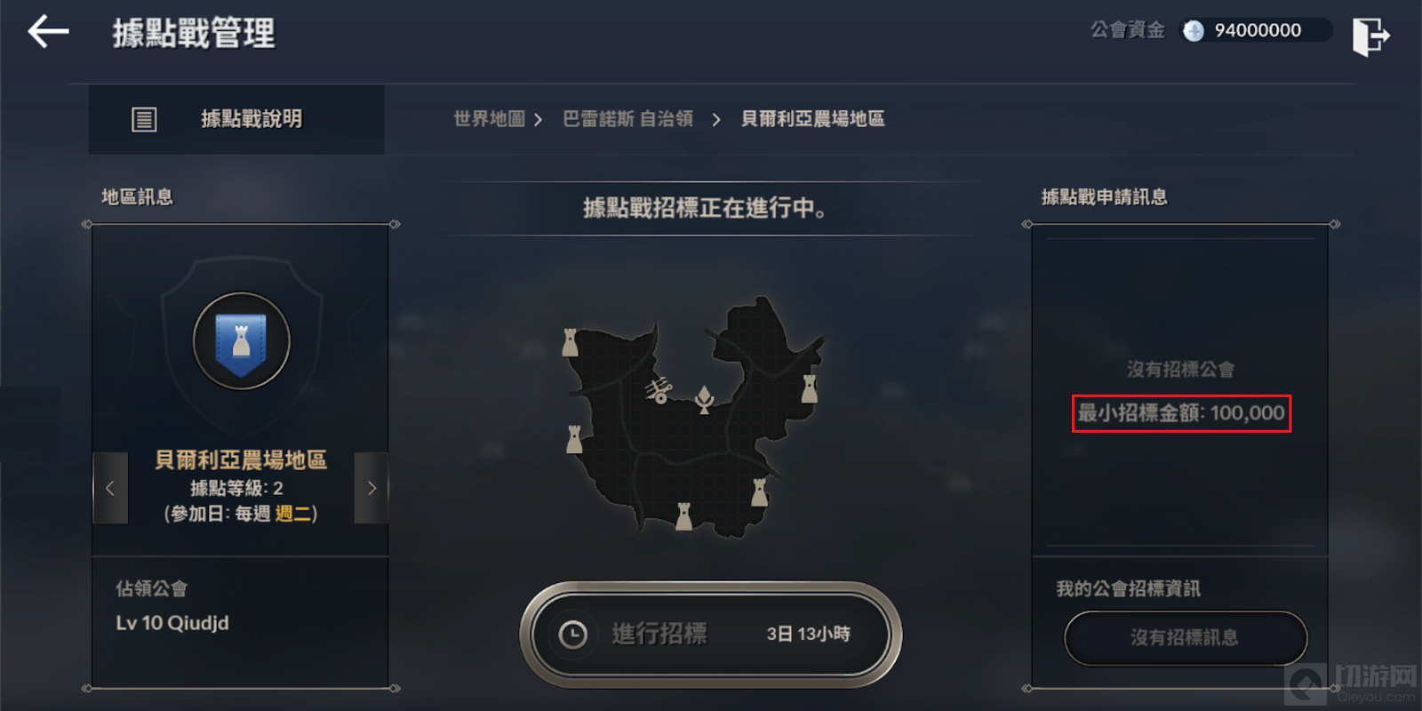 招标阶段采用动态保证金制度,不同据点设有参战门槛。这个设计既考验公会资源储备,也体现风险回报机制——高阶据点需要更高额度的战备金。