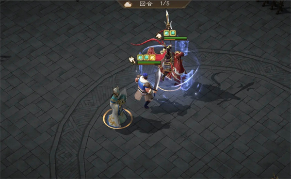 第一回合的操作要点:许褚只需为自己施加增益效果,不要主动出击。此时吕布应直接上前发动真实伤害技能,快速削减敌方血量。