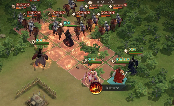 敌方弓骑兵机动性极强,开局需采取特定站位策略。建议周瑜优先向下移动至空地施放火系技能,构筑第一道防线。李儒则需在指定位置空放技能积攒怒气值,同时貂蝉和小乔应及时跟进支援。