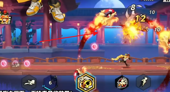 技能效果:抛出火球并向前冲刺,以舞狮动作完成下劈,对敌人造成火元素伤害。