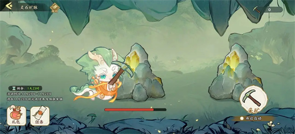 采矿过程中会随机产出天地品阶灵石或灵石宝箱,这些珍稀材料专用于武器升级系统。根据实测数据,使用元宝补充采矿次数能显著提升高阶灵石的获取概率。
