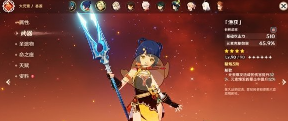 香菱的武器搭配同样重视充能效率,薙草之稻光、天空之脊、西风长枪都能有效解决充能问题。平民玩家可优先选择渔获,护摩之杖和匣里灭辰则能显著提升输出能力。
