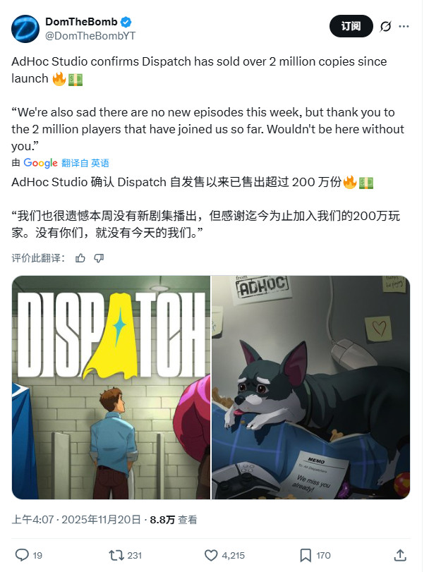 《超英派遣中心》火爆热销!发售首月销量突破200万