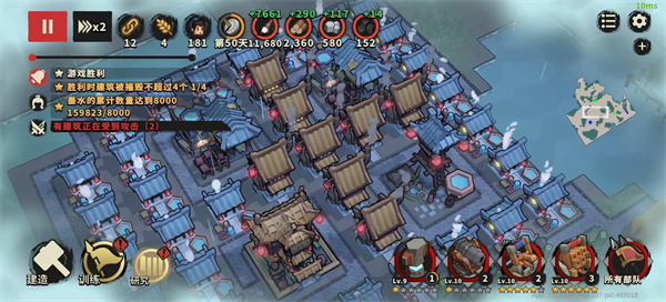 之后优先大炮和点出三级猛火油车。必要位置起两层石墙,(或加固城墙)以上配置前四波蛮够的。后面拿卡随意即可。