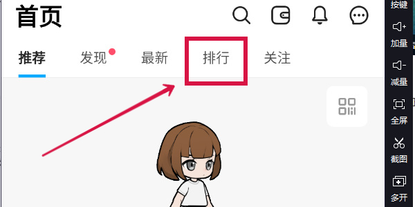2.安装完成后打开应用,在首页导航栏选择【排行】选项。
