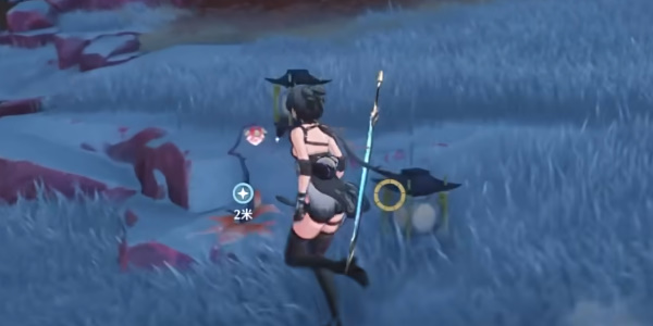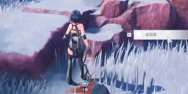 2、玩家首先跟随指引来到城镇里温泉附近采集雀翎果。