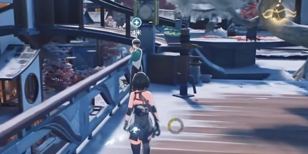 1、玩家首先传送到虹镇南方向的信标,接着来到头顶的建筑物上找到npc秉戈进行对话接取任务。