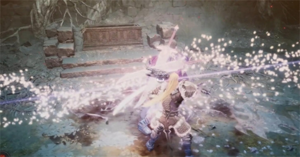 战斗开场阶段,奎多会以基础二连击起手:平砍接后跳蓄力后,刀身发光预示突刺攻击。此处可通过观察武器特效预判,建议在第三次发光瞬间使用弹反。