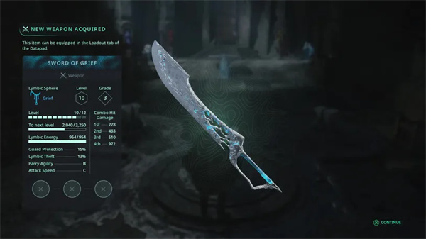 通过这道门后,你将在房间中央的祭坛上发现悲痛之剑。这把武器不仅造型独特,其背后还隐藏着游戏世界观中的重要故事线索。