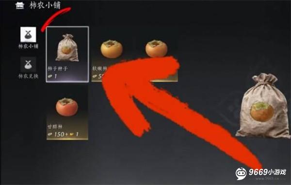 4、进入活动页面,打开柿子农小铺。连续8天购买所有可买的柿子种子并种植到田地。