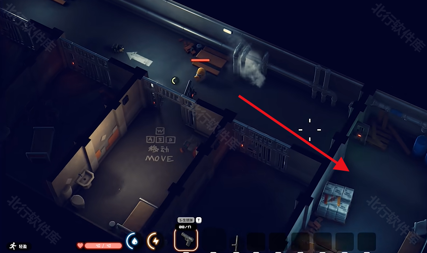1、先根据箭头指引出门左转,在隔壁拿枪和子弹