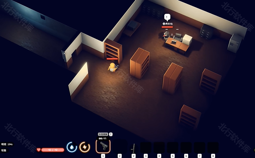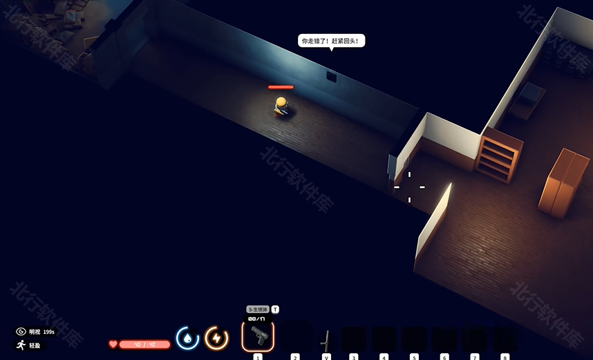 6、把门关上切成警棍等他过来,警棍是可以隔墙打中典狱长的,这样就能无伤击杀他了