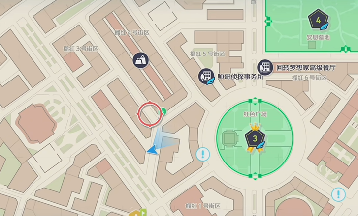 2、定位地图3号野生区域,十字路口标点处可见隐藏路径