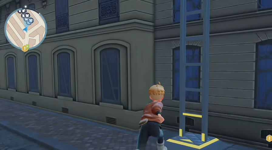 3、沿十字路口搜寻金属梯架,攀爬至上层平台