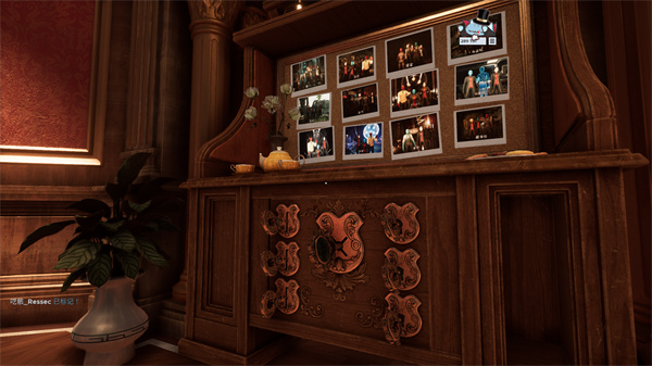 集齐全部钥匙后,需要将它们插入照片墙下方的古董柜。这个看似普通的柜子实则是多机关嵌套设计,当七把钥匙同时转动时,会弹出一本红色封面的古籍。这本载着游戏核心世界观线索,将其归位到书柜的特定空缺处,即可完成整个大厅谜题链。