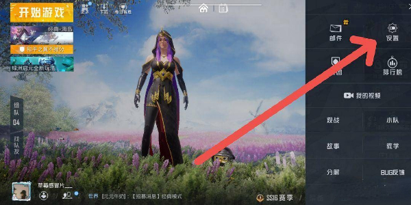 1.玩家首先进入和平精英游戏中,如何点击设置选项进入。