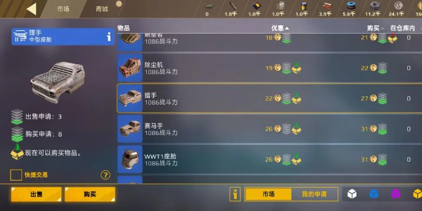 从车库主界面底部的“市场”图标即可进入这个充满机遇的交易空间。工程师们在此既能消耗金币获取急需的作战资源,也能通过精明的买卖策略积累财富,为战车改装提供更多可能性。