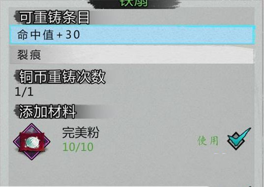 重铸的时候可以勾上,下次重铸会必出数值完美的条目,不过没法指定条目的内容比较可惜。