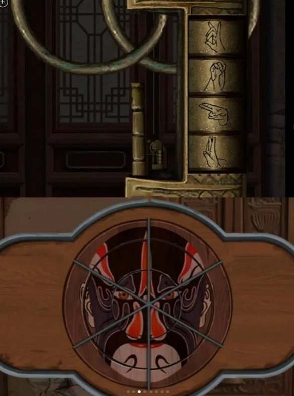12、回到中间的房间点击衣柜,用钥匙开启右上方衣柜的锁可以获得【白脸谱挂件】,前往二楼房间在木匣处按照顺序摆放脸谱,开启匣子可以获得【铜剪】