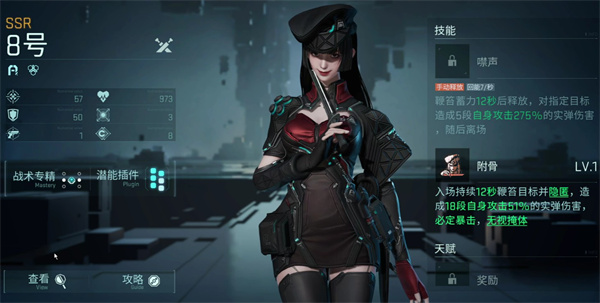 是游戏内的高属性值刺客单位,犀利攻击技能释放后,会对指定的目标造成基于自身基础攻击倍率为275%的伤害,且该伤害由四段,同时也是游戏内唯一一个可以隐身的角色。