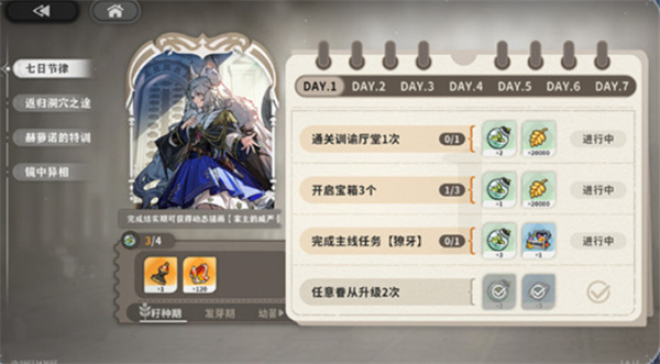 新手奖励:完成第一章第一幕可获得纳叶、海芙温、森音三位眷从角色。