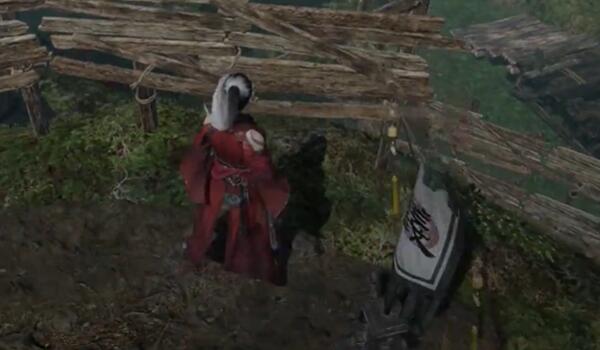 11、第四面旌旗置于村舍后院,需绕道破损围墙进入。