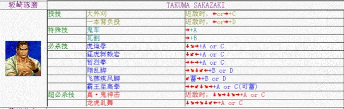 拳皇98坂崎拓马超全出招表