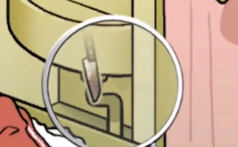 4、利用放大镜,能看到柜子中红色高跟鞋以及黑色身影。