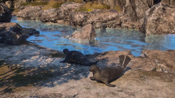 海岸线上分布着海豹、海鸥等新动物,它们在潮线与礁石之间形成独特的生态。向内陆行进,浓密的林地与起伏的丘陵构建出另一套截然不同的生态链,狐狸与山羊在此出现,为玩家带来新的狩猎和收集素材。