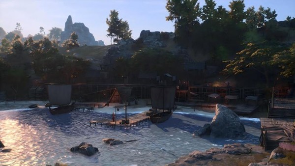 在最新实机片段中,玩家首次得以窥见哈尔马尔群岛的全貌。这片超过十平方公里的巨大岛屿拥有极为多样的自然结构——广阔的海岸线,幽深的森林与丘陵,嶙峋的岩壁、曲折的海湾地形,这些特色地形共同塑造了一个层次丰富、充满探索诱因的全新区域。