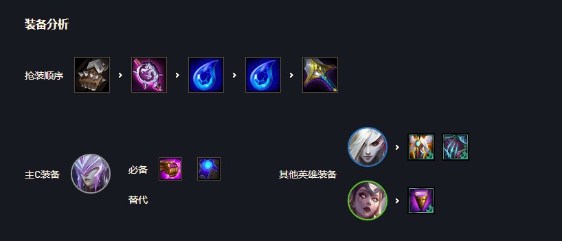 值得注意的是,莫甘娜在黑夜使者、复苏者等体系中也有亮眼表现。当前版本中,配合新装备"圣杯"可进一步提升团队收益,而"离子火花"能有效克制法师阵容。灵活调整站位使其覆盖更多敌人,是发挥其控制优势的关键。