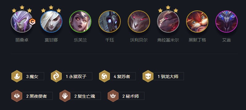 魔女体系是莫甘娜的最佳归宿,其羁绊加成能显著提升技能效果。运营策略上建议:开局优先抢拳套,优先合成丽桑卓的法爆+蓝霸符组合。前期保持低人口节奏,重点保留吸血鬼、丽桑卓等核心卡牌。5人口阶段卡利息追三星丽桑卓是关键转折点,成型后可选择速8或7人口补强阵容质量。