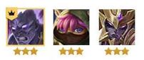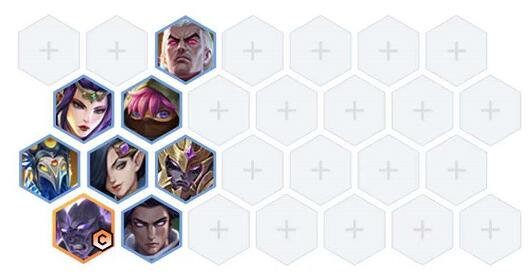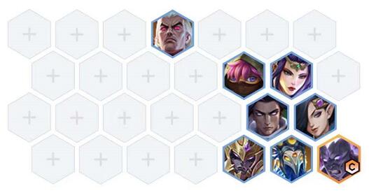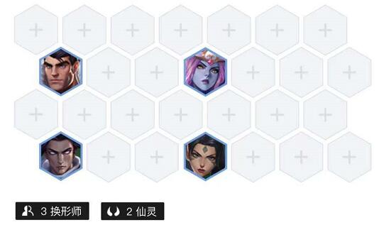 前期过渡:2阶段过渡非常灵活,谁先到二星就上谁,然后按照他的羁绊去拼凑,2-1拉4人口,2-5拉5人口,尽可能打连胜运营。当然如果牌不胡,想要过渡得平滑一些,可以直接选择2仙灵上场,外拼3换型师,又或者有天罚驽神就拼两游侠都是可以的。
