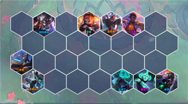 英雄:安妮、阿利斯塔、乐芙兰、佐伊、艾克、索拉卡、辛德拉、蕾欧娜、努努