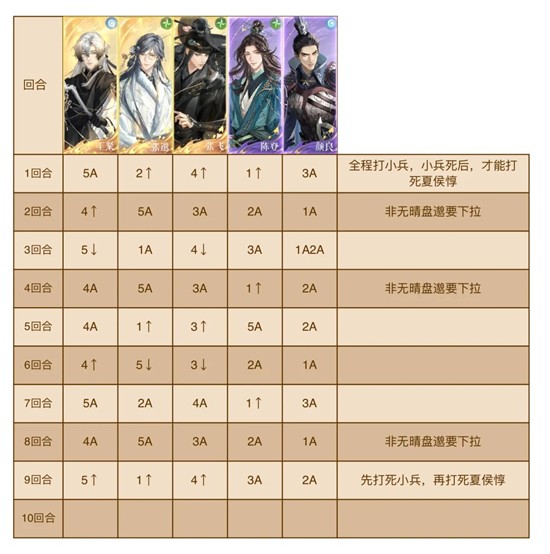 5.在打死两个小兵之前,夏侯惇绝对不能死,所以小兵1要在第三回合以后才可以死。打死小兵2时,夏侯惇不能死