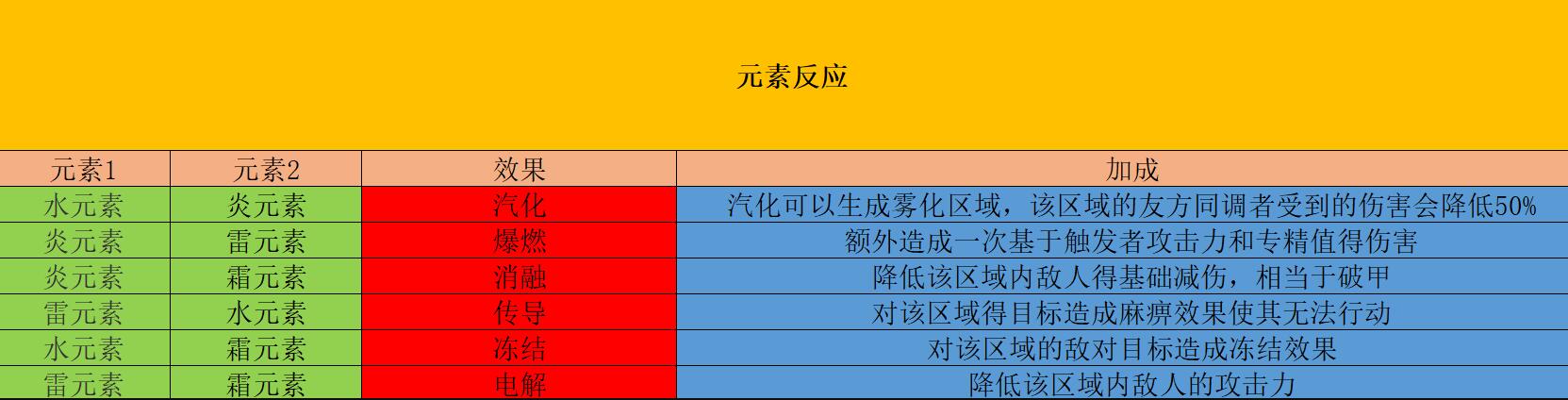 游戏中的物理、风、蚀属于独立元素,而水、雷、炎、霜之间会产生连锁反应: