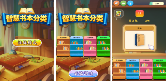 滑动屏幕即可浏览历史、文学等各类书籍,玩家需将绘本、故事书准确归入对应分类标签。这种寓教于乐的玩法既检验知识掌握度,又能系统提升信息归纳能力。