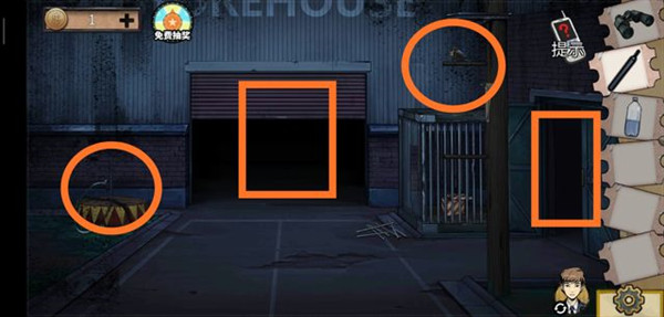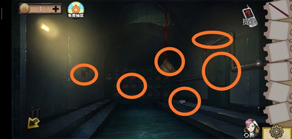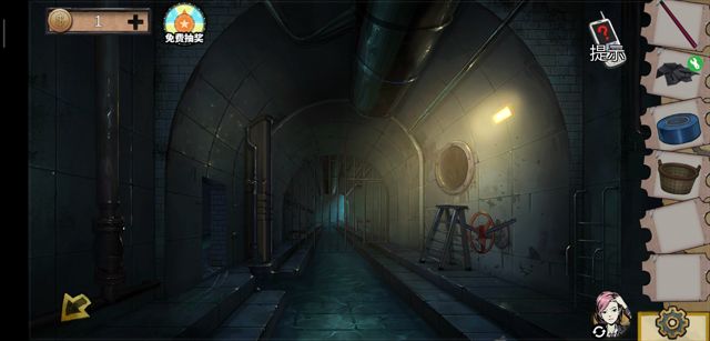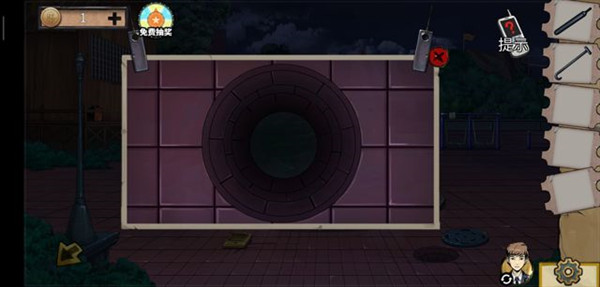 返回初始场景的水沟处取得塑料长棍,进入书包场景左侧房间后,收集悬挂的篮子、台阶上的防水布及胶带。使用长棍击落右侧门上方水管处的凿子,这件工具将用于开启隐藏的数字密码。
