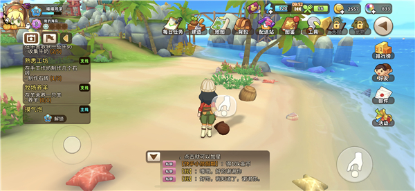 1、首先玩家能够在沙滩上捡到掉落的椰子,因为沙滩上都是椰子树,成熟后会掉落。