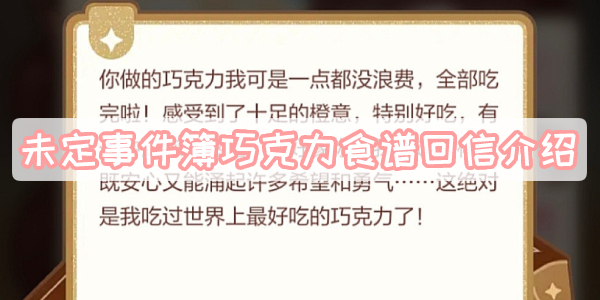 以上就是小编为大家带来的《未定事件簿》巧克力互动系统全解析,从基础配方到隐藏机制都已涵盖。更多精彩游戏资讯与深度攻略,请持续关注本站最新动态。