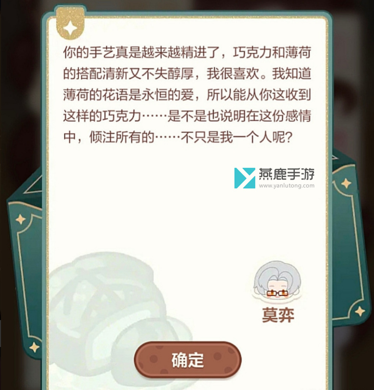 3、莫弈回信:神秘的心理学家对特殊食材调制的巧克力反应独特,回信中常包含耐人寻味的心理学隐喻。
